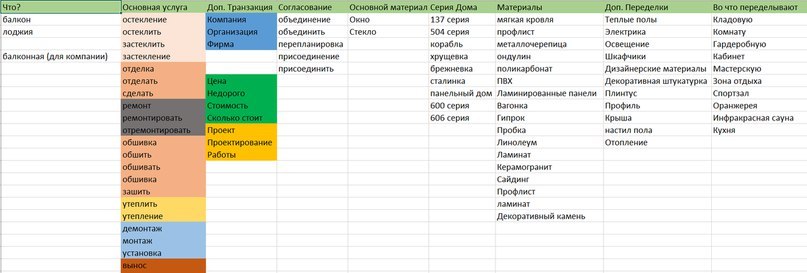 2. Собрал ключевые слова и сделал разбивку по кампаниям. Всего получилось 15 кампаний.
