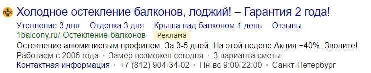 Клиент занимается остеклением и ремонтов балконов в г. Санкт-Петербург и уже имел сайт. Он был детально проработан и учитывал самые тонкие «нюансы», с проработкой «возражений», «страхов» потенциальных клиентов — это очень способствовало результатам рекламы