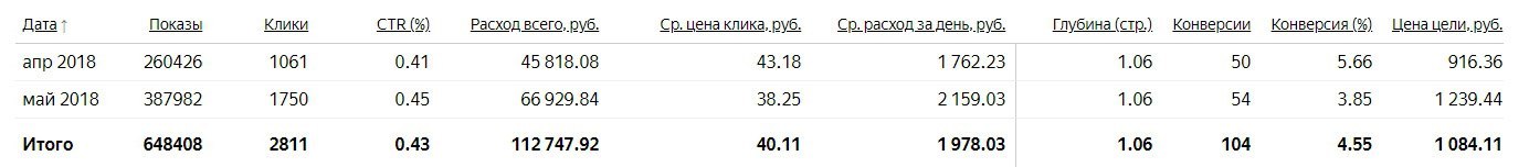 Статистика по рекламе с 03.03 по 31.05: