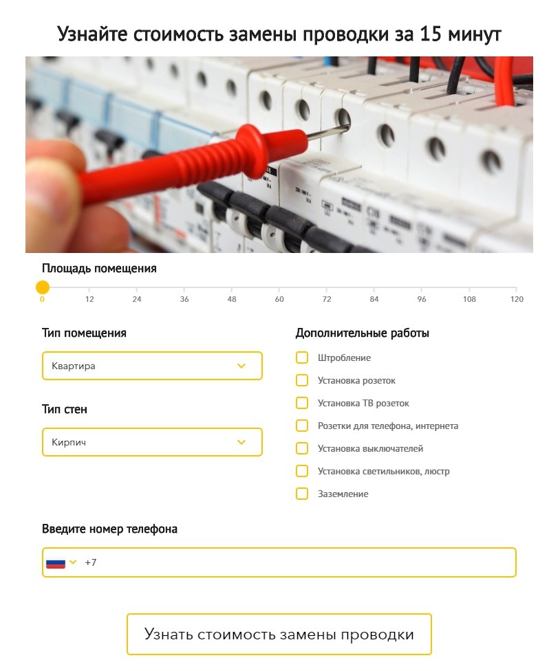 Клиент занимается установкой электрики в квартирах и коттеджах. У него есть сайт: Замена проводки. Сайт морально устарел. В основном приносил только звонки. За Март 2018 года при бюджете в Яндекс Директ 75 632 руб. было всего 28 звонков. Стоимость звонка: 2 701 руб.