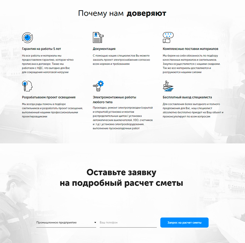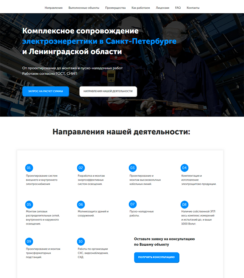 Необходимо было создать продающий сайт для промышленной энергетики. Минималистичный дизайн должен был сопровождаться продающими элементами.